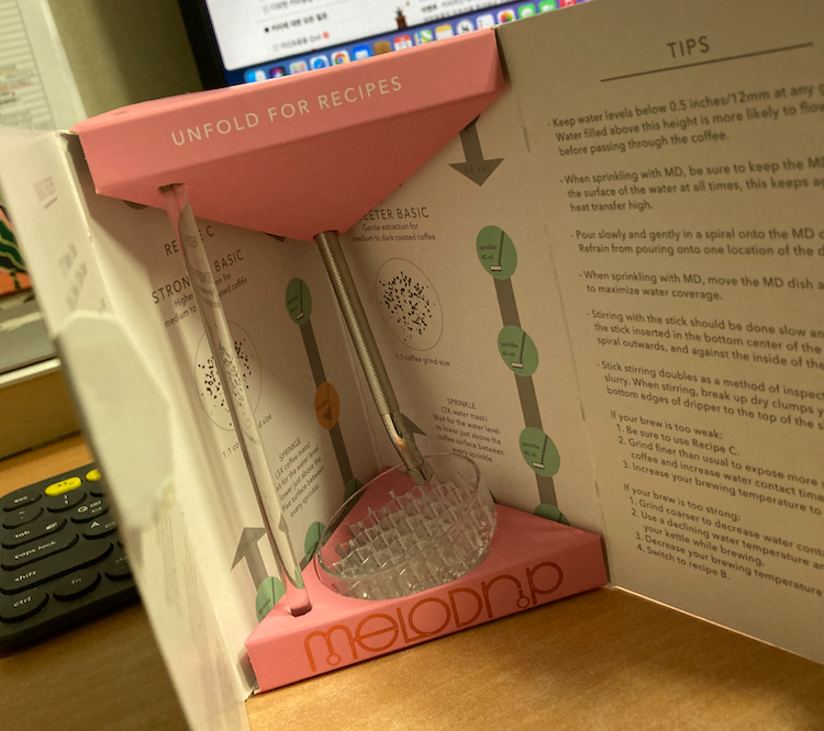 멜로드립의 장점은 물의 낙차가 줄어들어, 원두가루가 막 퍼지지 않아서, 깨끗하게 추출을 유도하는 것 같습니다.